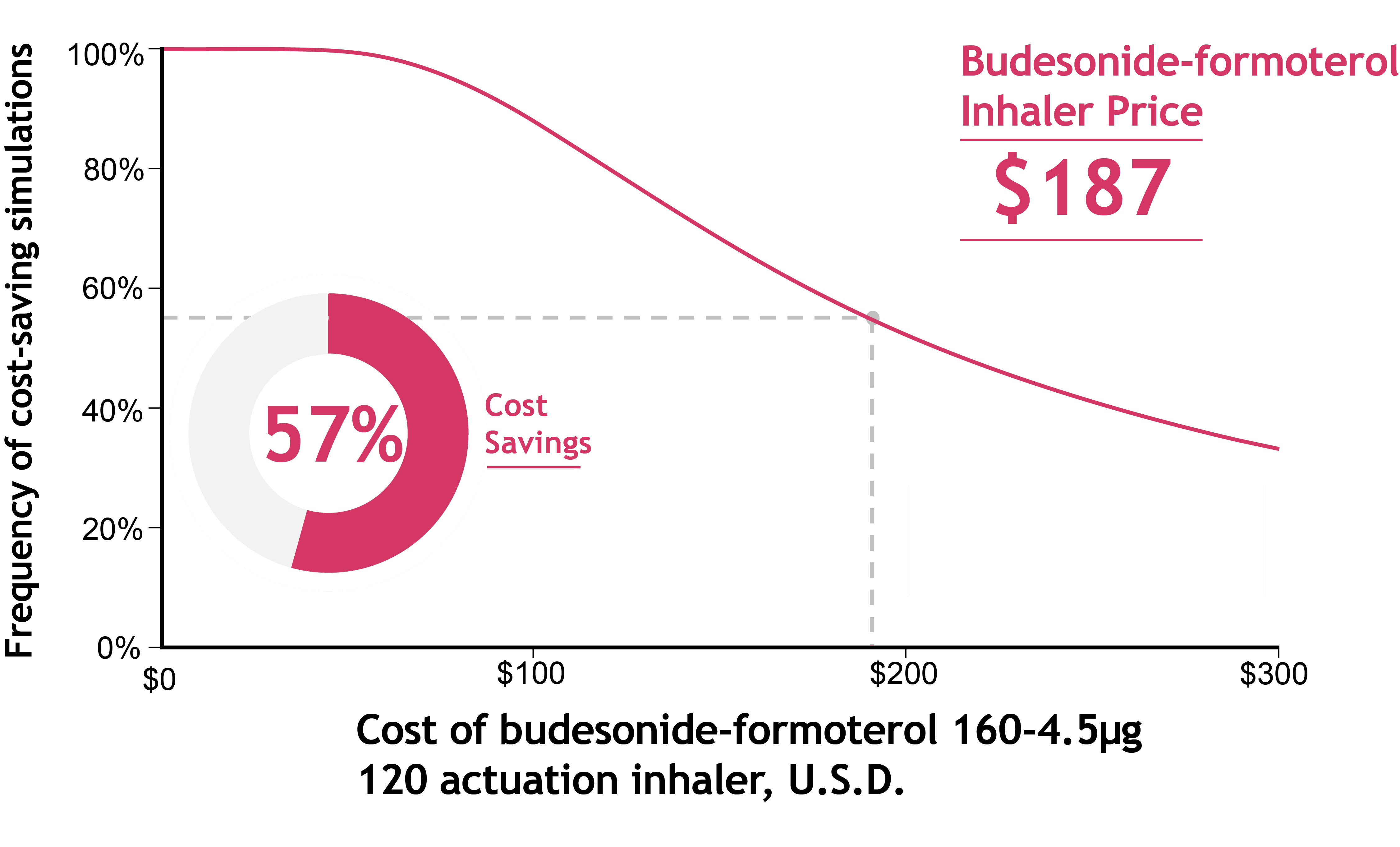 At an inhaler cost of $187, SMART saved money in 57% of simulations by reducing asthma-related complications.